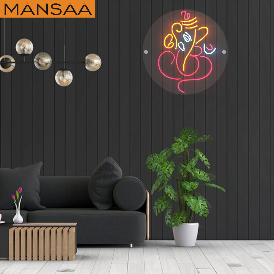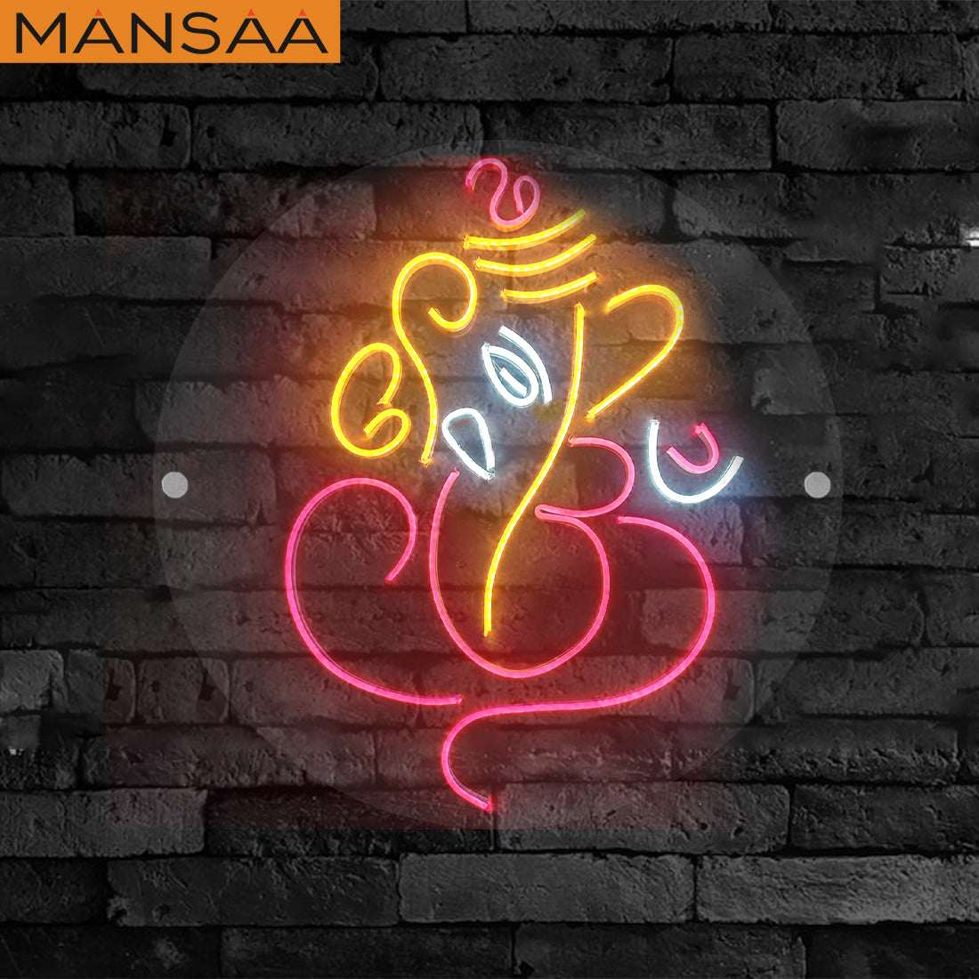 1. Divine Aesthetics: The Mansaa Illuminated Lord Ganesha Neon Sign showcases the iconic image of Lord Ganesha in stunning neon illumination. This art piece radiates a sense of peace, prosperity, and positive energy, making it an ideal addition to your living space, meditation room, or office.